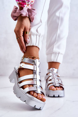Skórzane Sandały Z Paseczkami Srebrne Minorite