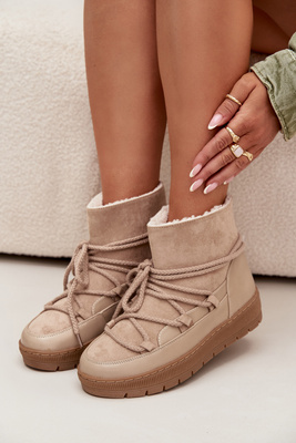 Śniegowce Damskie Na Platformie Z Futerkiem Typu Baranek Beżowe Luma