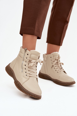 Śniegowce Botki Dziecięce Na Platformie Ocieplane Futerkiem Beżowe Vilabria