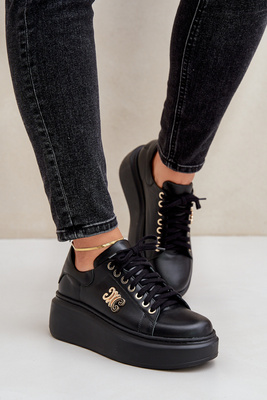 Sneakersy Ze Skóry Naturalnej Na Platformie Złota Ozdoba Lewski 3428 Czarne