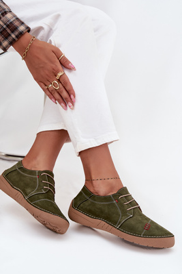 Zamszowe Sneakersy Damskie Na Platformie Z Grubym Sznurowaniem Artiker 55C0136 Zielone