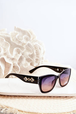 Damskie Okulary Przeciwsłoneczne Z Brokatowymi Wstawkami UV400 Czarne