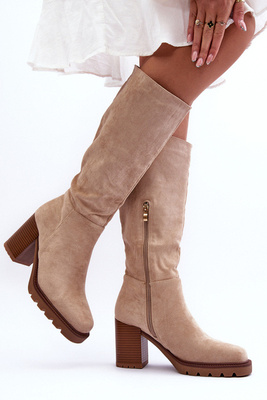 Zamszowe Botki Na Wysokim Słupku Beżowe Liani