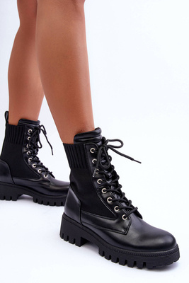 Botki Workery Damskie Ze Skarpetą Czarne Melaste