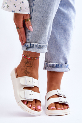 Klasyczne Damskie Skórzane Klapki Biało-Srebrne Nancy