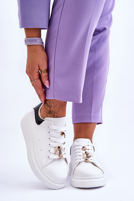 Damskie Buty Sportowe Na Masywnej Platformie Biało-Czarne Chante