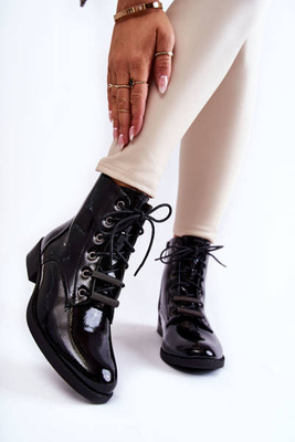Damskie Lakierowane Ocieplane Botki Workery Czarne Efemia