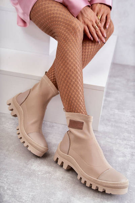 Damskie Ocieplane Botki Trapery Beżowe Liv
