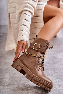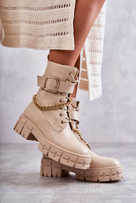 Modne Workery Botki Z Łańcuchem Beżowe Solesso