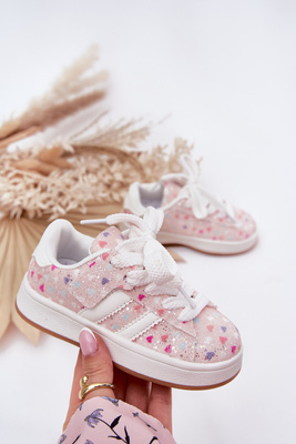 Błyszczące Buty Sportowe Dziewczęce W Serca Różowe Tessina