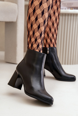 Gładkie Botki Damskie Na Słupku Z Eko Skóra Ocieplane Czarne Milisea