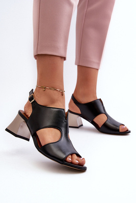 Zazoo 40256 Skórzane Sandały Na Koturnie Czarne