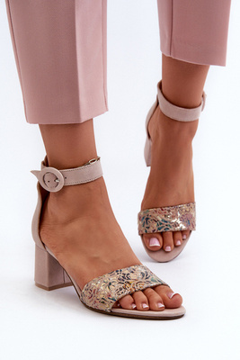 Zamszowe Sandały Na Obcasie Maciejka 04141-49 Beżowe