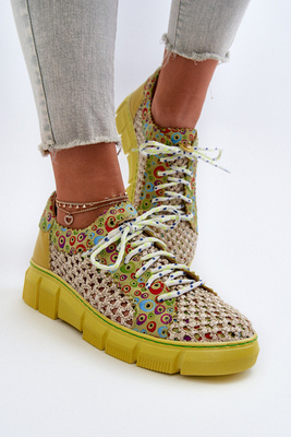 Skórzane Sneakersy Damskie Na Platformie Maciejka 06390-09 Seledynowe