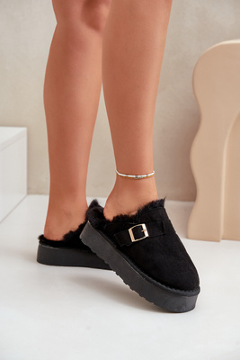 Niskie Śniegowce Damskie Na Platformie Ocieplane Futerkiem Czarne Saldren