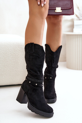 Botki Kowbojki Na Słupku Eko Zamszowe Czarne Arabelline