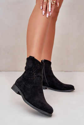 Botki Damskie Na Niskim Obcasie Czarne Aphroteia - Zamsz