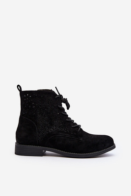 S.Barski HY66-135 Damskie Ażurowe Botki Na Płaskim Obcasie Czarne