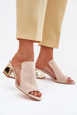 Eko Zamszowe Klasyczne Sandały Damskie Na Obcasie Beżowe Zarnella