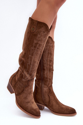Zamszowe Kozaki Kowbojki Na Niskim Obcasie Brązowe Lunah