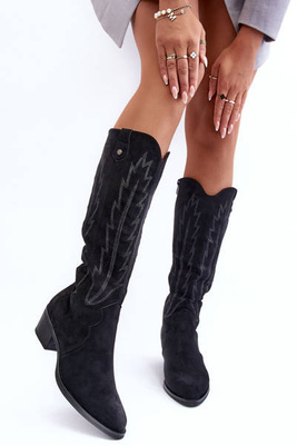 Zamszowe Kozaki Kowbojki Na Niskim Obcasie Czarne Lunah