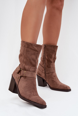 Kozaki Eko Zamszowe Obcas Słupek Na Zamek Ocieplane Wywinięta Cholewka Czekoladowe Evyra