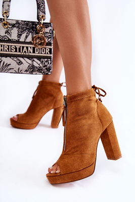 Zamszowe Botki Na Słupku Brązowe Vannes