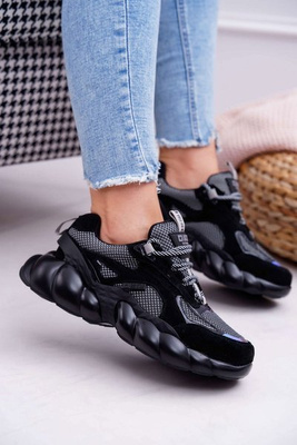 Damskie Sportowe Obuwie Big Star by Daniel Lopez Czarno Srebrne FF274A527