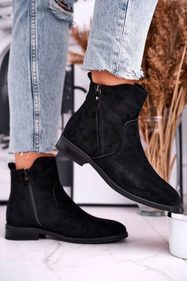 Botki Damskie Płaski Obcas Na Suwak Czarne Popsi