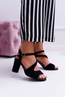 Sandały Damskie Na Słupku Sergio Leone SK868 Zamszowe Czarne Mersi