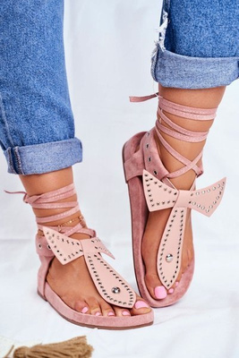 Lu Boo Damskie Wiązane Sandały Japonki Pudrowy Róż Mara