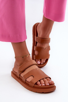 Wygodne Klapki Damskie Z Klamrą W Kwiaty Inblu GS000051 Brązowe