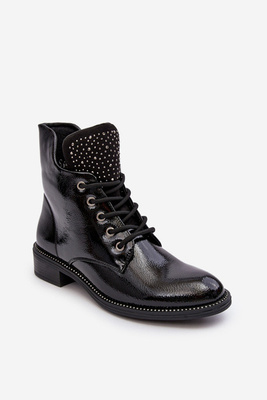 Lakierowane Botki Workery Z Ozdobą Czarne Emmber