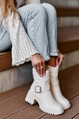 Ocieplane Skórzane Botki Z Klamrą Beżowe Osonia