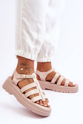 Modne Skórzane Sandały Na Koturnie Nude Arwen