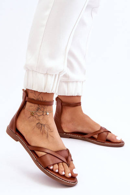 Damskie Płaskie Sandały Japonki Na Zamek Brązowe Rise Up!