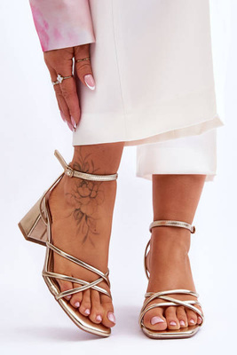Skórzane Sandały Na Koturnie Comfort Shoe Złote Verola