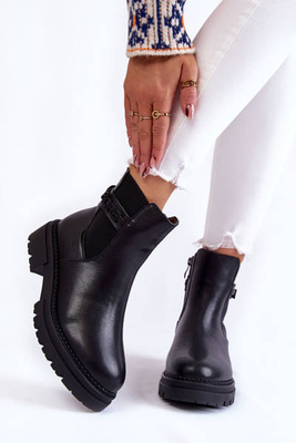 Damskie Ocieplane Botki Trapery Na Platformie Czarne Ofelia