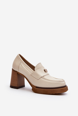 Zazoo 20169 Skórzane Półbuty Na Obcasie Beżowe