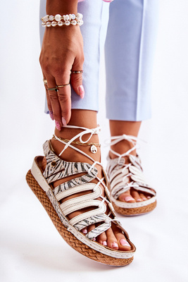 Damskie Skórzane Sandały Na Suwak Nicole 2748 Beżowe