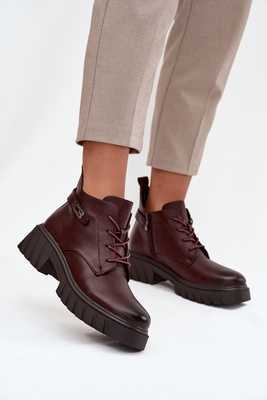 Niskie Ocieplane Botki Damskie Na Klocku Z Ozdobnym Paskiem Bordowe Therisse