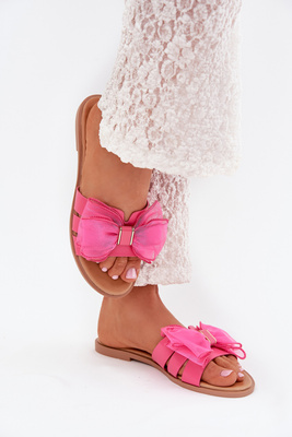Klapki Damskie Na Płaskim Obcasie Z Tiulową Kokardą Fuksja Tanira
