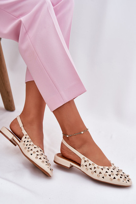 Zdobione Baleriny Na Płaskim Obcasie Beżowe Nilarisela