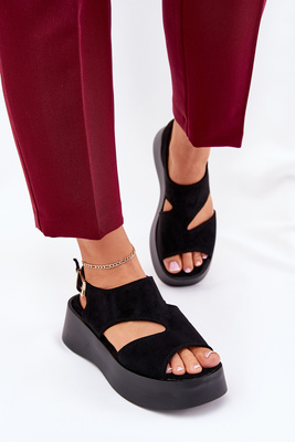 Sandały Damskie Na Platformie Eko Zamszowe Czarne Karonia