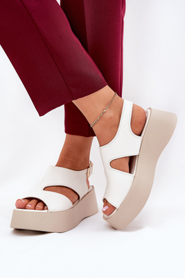 Sandały Damskie Na Platformie Eko Skórzane Białe Karonia