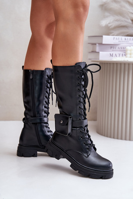 Ocieplane Kozaki Glany Do Połowy Łydki Z Saszetką Czarne Temisza