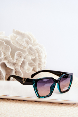 Okulary Przeciwsłoneczne Damskie Z Brokatowymi Wstawkami UV400 Złoto-Niebieskie