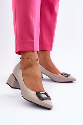 Czółenka Na Obcasie Klocku Z Ozdobą Eko Skórzane Szare Sarala