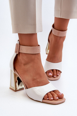 Lakierowane Sandały Na Słupku Beżowe Adrianu