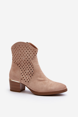 Botki Damskie Ażurowe Na Słupku Beżowe Niartima